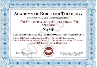The Academy of Bible and Theology offers solid biblical and theological instruction to pastors, evangelists, church leaders, and serious students in the Global South who want to "grow in the grace and knowledge of our Lord and Saviour Jesus Christ" (2 Peter 3:18). All courses are FREE. Lessons and exams are sent to students by email in PDF form, so no costly air time is required. Practice exams and a required Final Exam are provided so that students may demonstrate their knowledge in the subject matter of each course. Students who complete a course by passing the Final Exam are awarded a Certificate of Achievement that they may proudly display in their homes, workplaces or churches. Please review the material on this page and join us, either as a student or a financial supporter.